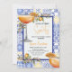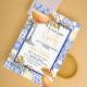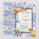 Fira den blivande bruden med solig stil och bubblig charm med denna "Kärlek vid första spritzen" Medelhavsinspirerade bröllopsfestinbjudan! Med en fräsch och livfull design inspirerad av klassiska blå orangea medelhavsplattor sätter denna inbjudan tonen för en chic och citrusinspirerad fest. Prydd med akvarell-spritz-cocktails, apelsiner och blomstergrönska är denna inbjudan perfekt för en sommarbröllopsfest, brunch eller trädgårdsfest. Den eleganta skriften och det moderna arrangemanget gör den både stilfull och rolig, precis som den fest du planerar.