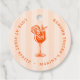 Ge dina bröllopsfester en extra touch med denna ”Love at First Spritz”-etikett från Redwood & Vine Design Co. – ett lekfullt erkännande av Aperol spritz-säsongen. Den runda etikettens design har en djärv orange illustration av en drink på en persikofärgad randig bakgrund med text som kan anpassas. Perfekt för att knytas runt små flaskor, ljus eller fester, den lägger till en festlig och stilren touch till din fest. Perfekt för sommarfester, italienska temafester eller vilken blivande brud som helst.