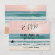 Se till att dina gäster är redo för din speciella dag med detta eleganta strandtemade svarsbrev. Med en samordnad havsinspirerad design med rosa glitteraccenter högst upp och längst ner matchar detta svarsbrev vackert det brev där ni sparar datumet. Det skimrande rosa glittret ger en touch av glamour och sofistikation, perfekt för en kustnära ceremoni eller en destinationbröllop. Med en enkel och stilren layout kan dina gäster enkelt svara på er hänförande havsutsikter-ceremoni. En hjärtlig hälsning på baksidan ger en personlig touch och skapar en minnesvärd upplevelse för era gäster.
