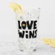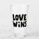 Den här designen innehåller frasen Kärlek vinner med ett färgstarkt regnbåge.