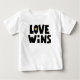 Den här designen innehåller frasen Kärlek vinner med ett färgstarkt regnbåge.