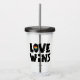 Den här designen innehåller frasen Kärlek vinner med ett färgstarkt regnbåge.