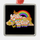Retro stil färgstarka "Kärlek wins"-textdesign med regnbåge, sol, fjärilar, blommor, moln, dekoration på grym bakgrund