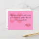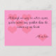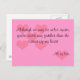 När du är borta från den du kärlek, skicka kortet för att påminna dem om hur mycket du saknar dem och kärlek dem. Framsidan är en rosa bakgrund med mörkare rosor och lyder: "Även om vi kan vara långt ifrån varandra, är du aldrig längre än mitt hjärta." Under den står "Hela kärlek".