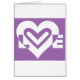En grafisk logotyp, anpassningsbar. KÄRLEK i vitt och lila.
