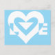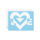 En grafisk logotyp, anpassningsbar. KÄRLEK i vitt på blå.