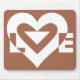 En grafisk logotyp, anpassningsbar. KÄRLEK i vitt på brunt.