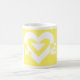 En grafisk logotyp, anpassningsbar. KÄRLEK i vitt på gult.