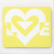 En grafisk logotyp, anpassningsbar. KÄRLEK i vitt på gult.