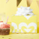 En grafisk logotyp, anpassningsbar. KÄRLEK i vitt på gult.