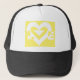 En grafisk logotyp, anpassningsbar. KÄRLEK i vitt på gult.