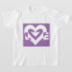 En grafisk logotyp, anpassningsbar. KÄRLEK i vitt på lila.