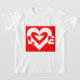En grafisk logotyp, anpassningsbar. KÄRLEK i vitt på rött.