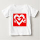 En grafisk logotyp, anpassningsbar. KÄRLEK i vitt på rött.