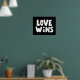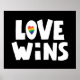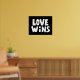 Den här designen innehåller frasen Kärlek Wins med ett färgstarkt regnbåge.