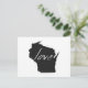 Det är perfekt för vilken Wisconsin-vykort som helst, som verkligen gör i kärlek och vill Kärlek i kontakt med nära och kära som känner på samma sätt, att ha en silhuette karta-form med en solid svart kritbakgrund och ord-Kärlek skriven i vit kursiv nedre fodral-skrift.