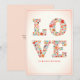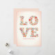 Platta hälsningskort för trendig elegant med staplat brev som stavar "KÄRLEK" i blommigt och geometriskt mönster över en övertoningspersikobakgrund med ett rundat hörn gräns. Anpassningsbar meddelandetext. Perfekt för Alla hjärtans dag, Sötaste dagen, bröllop-årsdagen eller vilken dag som helst! Finns i ett kursiverat urval av färg med pulserande bakgrund. Finns även som vikat kort.