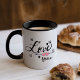 Kärlek You | Fotohandskriven text Kaffe Mugg I denna enkla och elegant svarta och vita mugg står "Kärlek you" i modern, handskriven svart text med motsvarande hjärtan och ställe för namn på andra sidan. Anpassa alla tillgängliga alternativ som du vill.