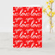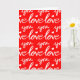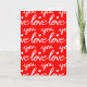 Det här tomma hälsningskortet har en mönster av handskriven calligraphy ord som säger Kärlek i rött och vitt, som är perfekt för Alla hjärtans dag eller en årsdag.