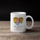 Personlig mamma kaffe mugg med två familjefotor i söt hjärtform, ord "vi kärlek er mamma" och barnen namn. Kan ändras till vilken relation som helst!