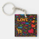 Färglöst KÄRLEK ord mönster är hundratals hjärtan i pulserande gult, rött, rosa, blått och grönt färg över svart bakgrund