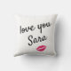 Den här söta kudden accentueras med KÄRLEK DU, ditt namn och en kyss på framsidan. Baksidan av denna kudde dekoreras ytterligare med en stor kyss, och den här kudden skapar en perfekt på Alla hjärtans dag, en födelsedag, en årsdag.