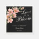 Kärlek är i blom Pink körsbärsblom på svarta bröllopsdusch servetter - Dessa vackra, unika, eleganta och moderna bröllopsdusch servetter har en bukett av rosa körsbärsblomgrupper mot en slank, svart bakgrund. Med en kombination av skriv kalligrafi och elegant blockstil, utstrålar dessa snygga bröllopsdusch servetter sofistikering och tidlös elegans. Njut av en oföglig tid med vänner och familj som överöser den blivande bruden. Redigera dessa personliga bröllopsdusch servetter med den lättanvända mallen med dina egna evenemangsuppgifter.