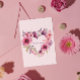 Vår "Blommor av kärlek" blommiga krans-kort är ett utsökt uttryck för tillgivenhet och charm. Detta kort har en delikat komposition av violetta och rosa blommor, varsamt utformade till en vacker blommig krans som förkroppsligar kärlekens väsen.
