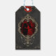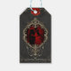 Kärlekens skönhet och rikedom symboliseras av den guldfärgade metallramen, medan det dinglande pärlhalsbandet tillför en touch av glamour och festlighet. Den mörkröda bakgrunden utstrålar passion och värme. Den röda rosen, placerad på ramen, förstärker den romantiska känslan och symboliserar kärlek och tillgivenhet.