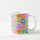 Färgrika hjärtor i kulört kvadrerar dekorerar denna charma och romantiska mugg som är perfekt för valentines day, nygift person eller någon som är förälskad, eller som älskar kärlek!