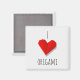 Magneten "älskar jag origami" med illustrationen för hjärtaorigamivektorn.