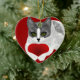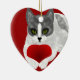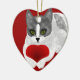 En digital illustration av en allvarlig vit- och gråttkattunge som är skyddande av en lite röd hjärta.