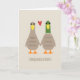 Söta tecknade gräsänder som håller varandra i handen. Framsida: "KVAKULATIONER." Insida: "Du klarade det!" Texten kan anpassas med din egen känsla för det lyckliga paret. Ett roligt bröllopskort för det nygifta brudparet. Besök Jenn's Doodle World för ännu fler roliga brölloppsgratulationskort och presentartiklar med dessa bedårande ankor.