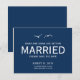 En modern illustration av två kärleksduvor som flyger över havsvågorna skapar en vacker brölloppsinbjudan som kompletterar din romantiska strandbröllopsfirande. Fler färger tillgängliga. Anpassade färger tillgängliga på begäran.com