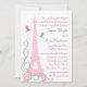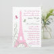 Ett högt, elegant och statligt Eiffeltorn pryder denna bröllopsinbjudan. De subtila rosa nyanserna och det prydliga franska skrivsättet framhäver romantiken under din parisiska kväll. Denna inbjudan visas på vanligt papper, men jag rekommenderar tyngden och strukturen hos linnepapper. Denna inbjudan är en del av en komplett bröllopslinje, men om ytterligare föremål krävs, så låt oss bara veta.