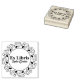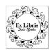 En rund Ex Libris-stämpeldesign med en cirkulär kant uppbyggd av små fåglar som var och en håller ett kärlekshjärta på en liten stav i näbben. Ändra namnet för att personliggöra.