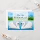 Original konstnärlig design med två svanar på en anpassningsbar inbjudan av formgivaren Carolyn McFann från Two Purring Cats Studio.