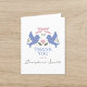 Fira resan till äktenskapet med en känsla av grace och tacksamhet med "Love Birds" tackkort för bröllopsfest. Boende mitt i en romantisk vinjett förenas två blå fåglar vid ett kärleksfullt illustrerat hjärta, som symboliserar gemenskap och tillgivenhet. Detta kort förkroppsligar den glada känslan av er kommande vigsel och erbjuder en perfekt möjlighet att uttrycka er tacksamhet till vänner och familj. Med sin blandning av klassiskt charm och modern design är det en idealisk symbol för tack för er bröllopsfest, anpassningsbar för att spegla er unika kärlekshistoria.