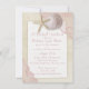 Vintage lila spets och skatter från stranden skapar en vacker strandtema bröllopsinbjudan. Anpassa texten efter önskemål.