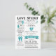 Kärlekshistoria Spara datum vykort. Detta informationsgrafiska Spara datum vykort är en ny twist på det traditionella Spara datum-kortet. Dela din kärlekshistoria från den dag ni träffades fram till er bröllopsdag med denna personliga design.