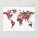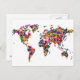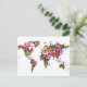 Världskarta gjord av överlappande färgglada genomskinliga hjärtan, på en vit bakgrund