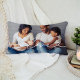 Vit kärleksskrift med en hjärtsnörning sveper över ditt favoritfoto på denna personliga ländryggskudde. Det avlånga formatet visar vackert bredare porträtt och gruppbilder — perfekt för familjefoton, parporträtt eller något speciellt minne. Ladda upp ditt eget foto för att skapa en mysig souvenir till vardagsrummet, sängen eller läshörnan.