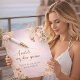 Fira kärlek i dess mest eleganta form med denna vackert utformade romantiska design. Med mjuka rosa blommor, polerade hjärtaccent av guld och flytande kalligrafi-typografi fångar detta konstverk essensen av djup, varaktig kärlek.