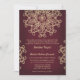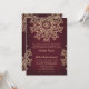 En vacker karminröd burgunderröd och guld bröllopsinbjudan med ett exotiskt indiskt inspirerat ornamentalt sari-MEDALJONG-mönster MED EN BLOMSTER- OCH LOTUSSOLSTRÅLNINGSDESIGN. Denna eleganta och vackra moderna indiska bröllopsinbjudan är perfekt för alla formella tillfällen MED EN ÖSTASIATISK INDONESISK MAROCKANSK ALADDIN- ELLER TUSEN OCH EN NATTS-TEMA. Designad av Chrissy H. Studios, LLC. Alla rättigheter förbehållna.