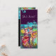 Färgrik, elegant och livfull finkonstig inbjudan. Romantiska karnevalsdansare: Konstnärliga, fantasifulla, uttrycksfulla dansfigurer, vacker blond kvinna i fjäderprydd glittrande kostym dansar med en ung Harlekin med blåa blomsterdekorationer på baksidan av kortet. Akvarellmålning i ljust rosa, fuchsia, grönt, rött, blått, gult, med guldglitter inspirerad av Commedia dell'Arte och Karnevalen i Venedig. Det är också en vacker design för bröllopsannonseringar, program, save the date, årsdagar, sammankomster, romantiska förlovningar, brudshowers, speciella tillfällen, julfest, Mardi Gras maskeradbal, födelsedagsfester, Sweet