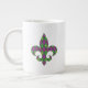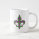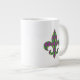 En harlequin mönster av grönt och lila förvandlas till en lekfull arsenal med en övertäckning av guld diamantkonturer och loppur de lis, som skapar en roligt och färglös mönster-perfekt för alla nya orleaner som påverkat Mardi Gras firande. Mönster maskeras bakom silhuetten på en loppur de lis för att lägga till en sista roligt. Mugg finns i storlek på jumbo, espresso och china av ben samt stilar.