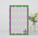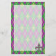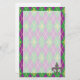 En harlequin mönster av grönt och lila förvandlas till en lekfull arsenal med en övertäckning av guld diamantkonturer och loppur de lis, som skapar en roligt och färglös mönster-perfekt för alla nya orleaner som påverkat Mardi Gras firande. En mönstrad loppur de lis sitter i stationens grund hörn för att skapa en söt och tillsatt beröring.