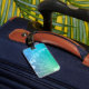 Skuggor av blått och grönt med ett järnhjul. Minnen från sommaren.