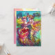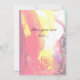 Färgrik, elegant och livfull finkonst inbjudan. Romantiska karnevalsdansare: Konstnärliga, fantasifulla, uttrycksfulla dansfigurer, vacker blond kvinna i fjäderförsedda skimrande kostymer dansar med en ung Harlekin med en gyllene röd ros på baksidan av kortet. Akvarellmålning i ljust rosa, fuchsia, grönt, rött, blått, gula färger, guldgnist inspirerad av Commedia dell'arte och Karnevalen i Venedig. Det är också en vacker design för bröllopsannonseringar, program, save the date, årsdag, sammankomster, romantiska förlovningar, brud shower, speciella tillfällen, Holiday party, Mardi Gras maskeradbal, födelsedagsfester. Sweet 16,