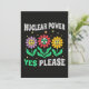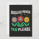 Söta leende blommor med kärnkraftssymbol och positivt budskap om ren energi. Ett glatt retroinspirerat uttalande som stöder kärnkraft, hållbarhet och elproduktion med låga utsläpp.